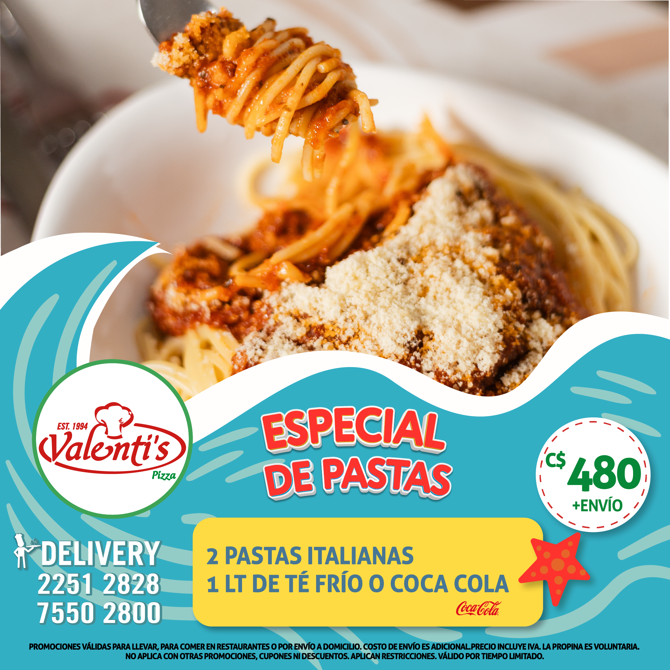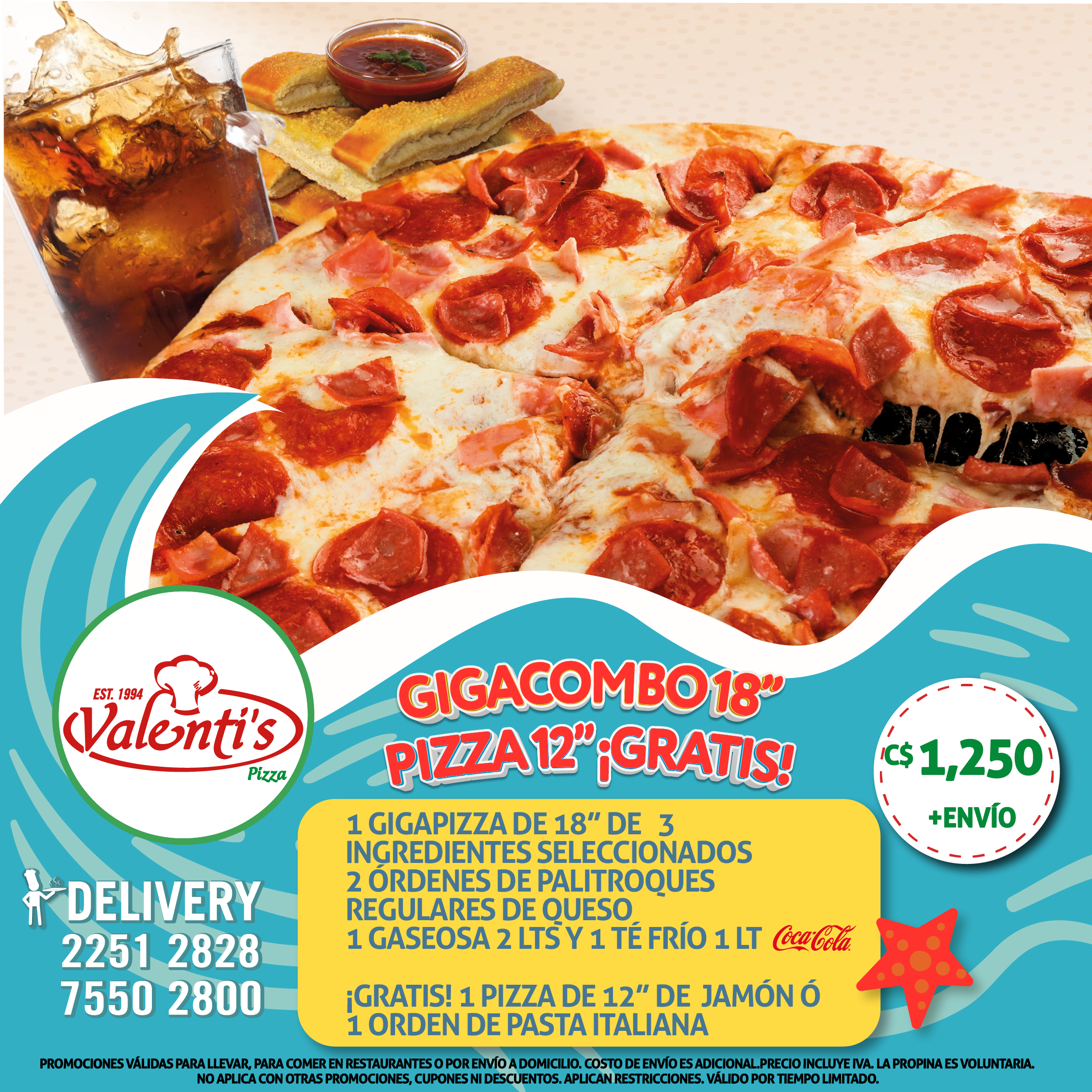 - ¡GRATIS!: 1Lt. de Té Frío o Coca Cola.